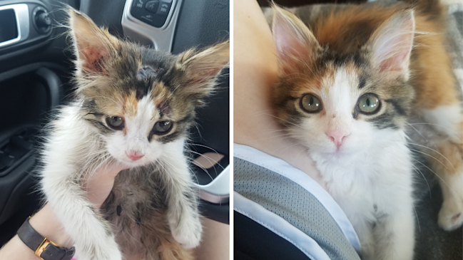"Two months ago a box full of severely malnourished kittens was left at the vets, unfortunately only one of them was still alive but she was only just hanging on. With a ton of hard work and love, little Ciri is now a perfectly healthy kitten who loves to play and explore."